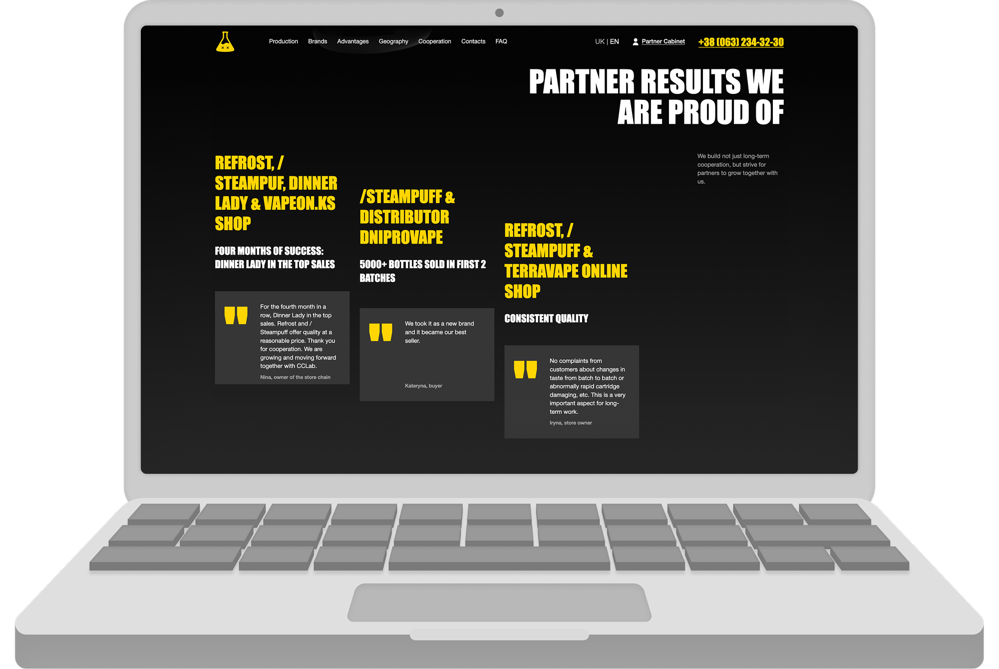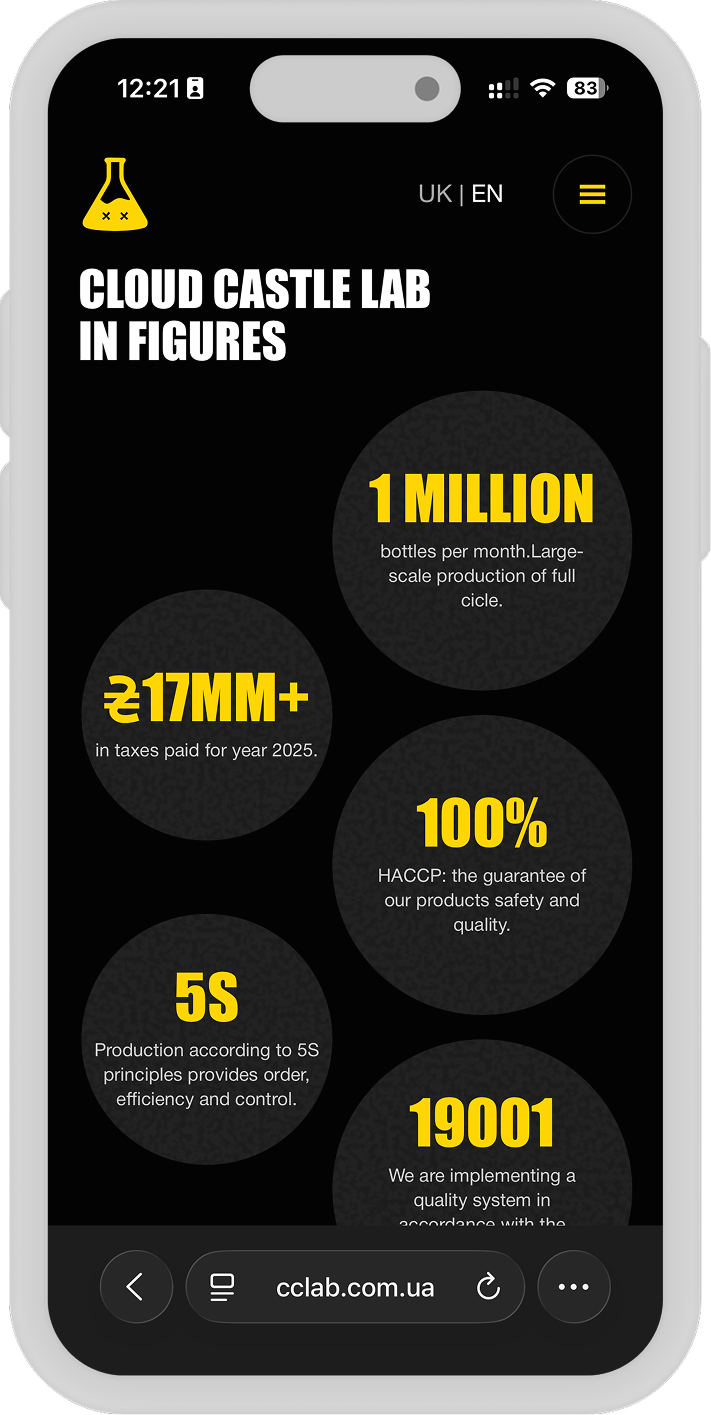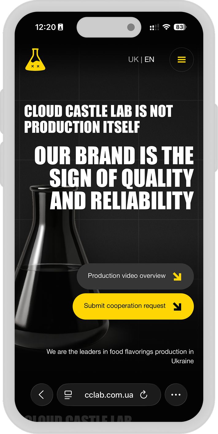 Cloud Castle Lab is a leading Ukrainian manufacturer of food flavorings that required a powerful digital presence to match its market status. Momentum Squads took over the full cycle of development, moving away from standard templates to create a custom solution that emphasizes the brand's reliability and technological superiority. We focused on a premium dark-themed design that reflects the laboratory nature of the business while ensuring high loading speeds and a flawless user experience.