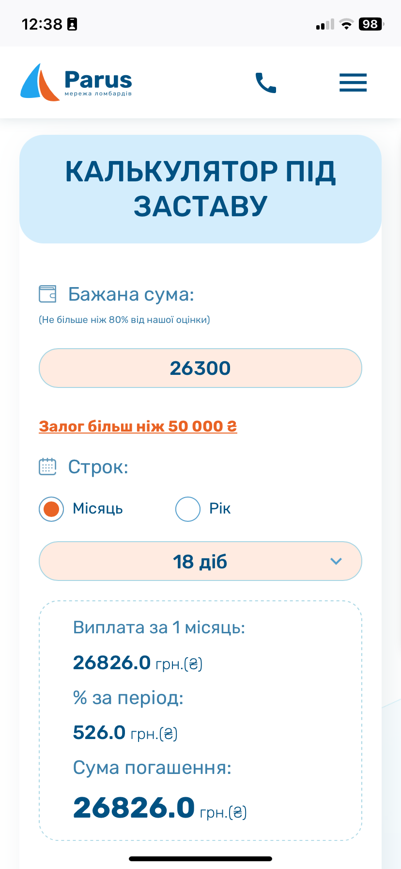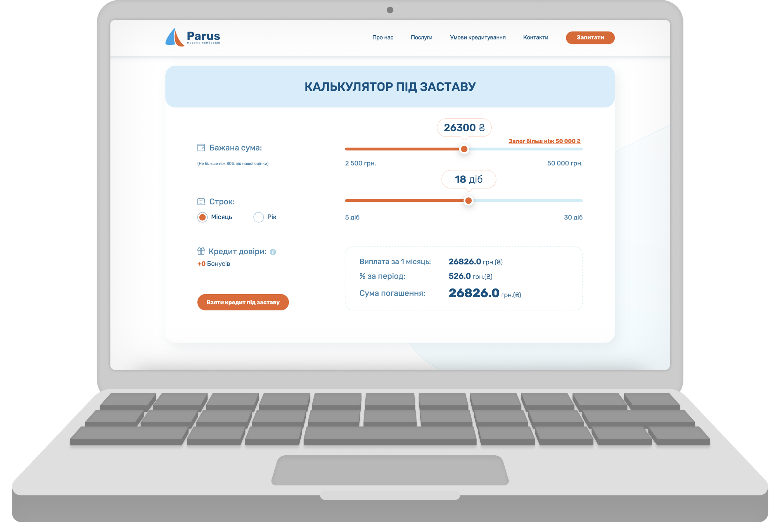 Parus Pawnshop — Website with Instant Collateral Calculator